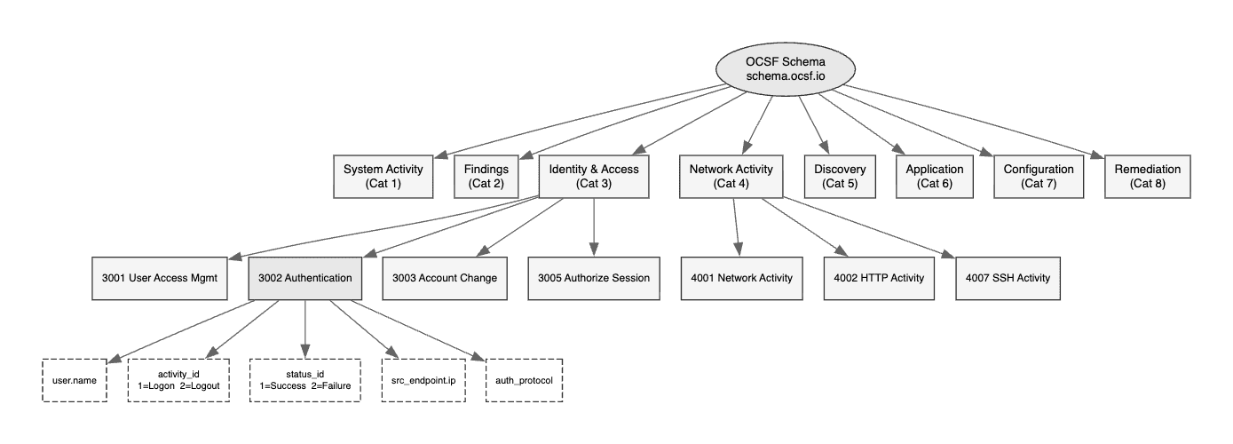The key insight is in the leaf nodes. Every authentication event whether from Active Directory, Okta, or AWS IAM, MUST uses the same field names:
