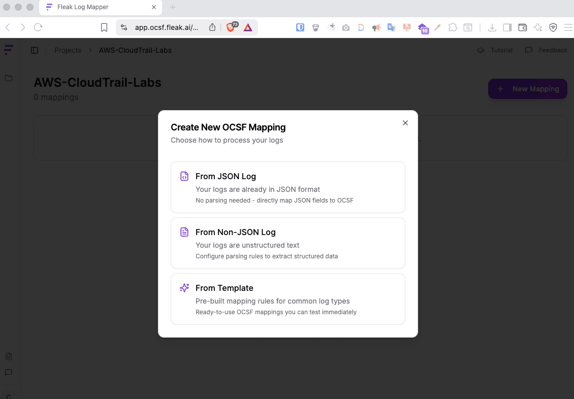 Fleak is a data workflow and transformation platform with a specific focus on security data engineering. Their product portfolio includes a broader data workflow builder and an execution engine called ZephFlow - but the piece we are examining here is their free community tool: the OCSF Log Mapper.